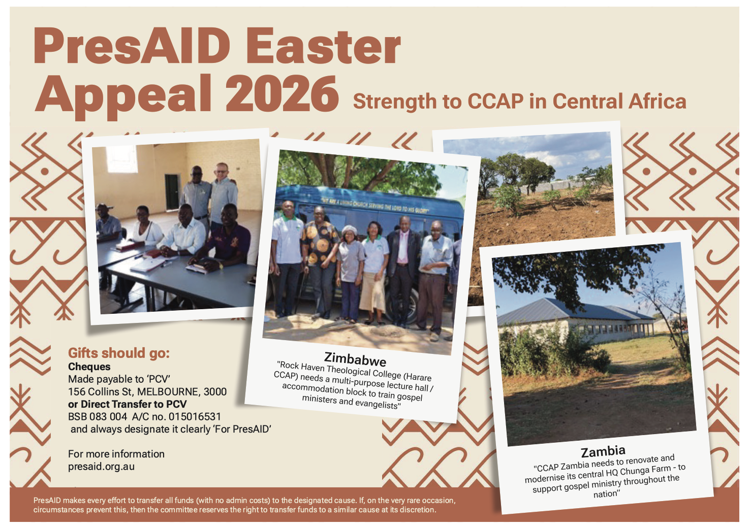 PCA PresAid Easter Appeal for 2026 will raise funds for our two sister Presbyterian churches in Central Africa: